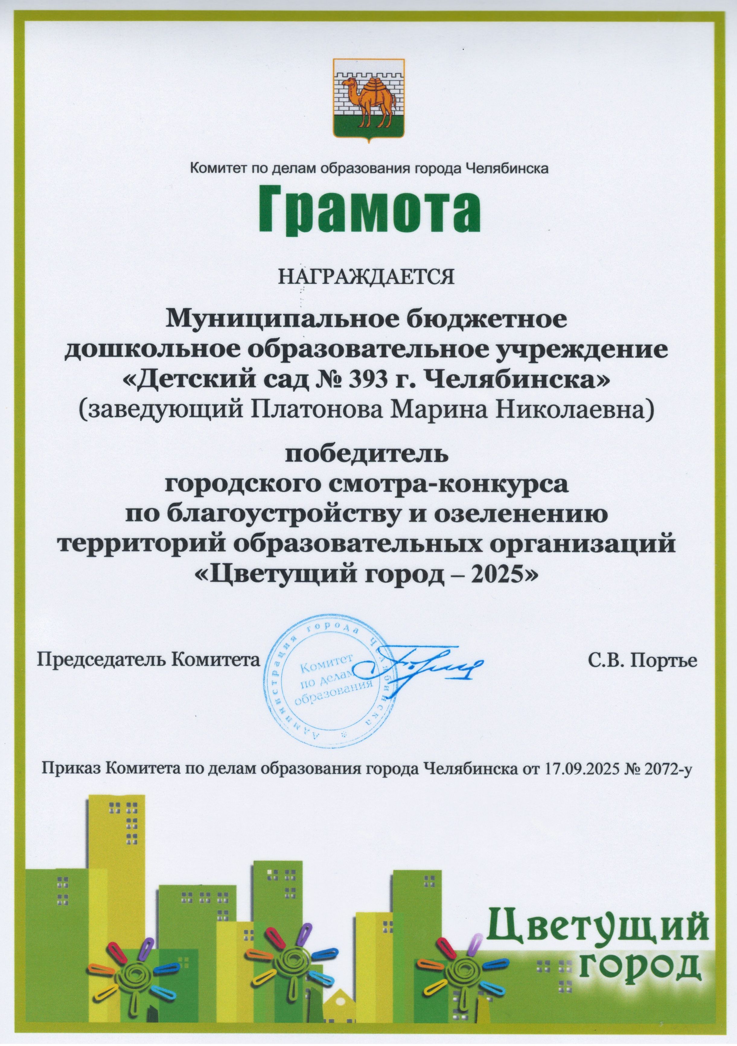 - Приказ Комитета по делам образования от 25.02.2025 № 459-у "О проведении городского смотра-конкурса "Цветущий город"