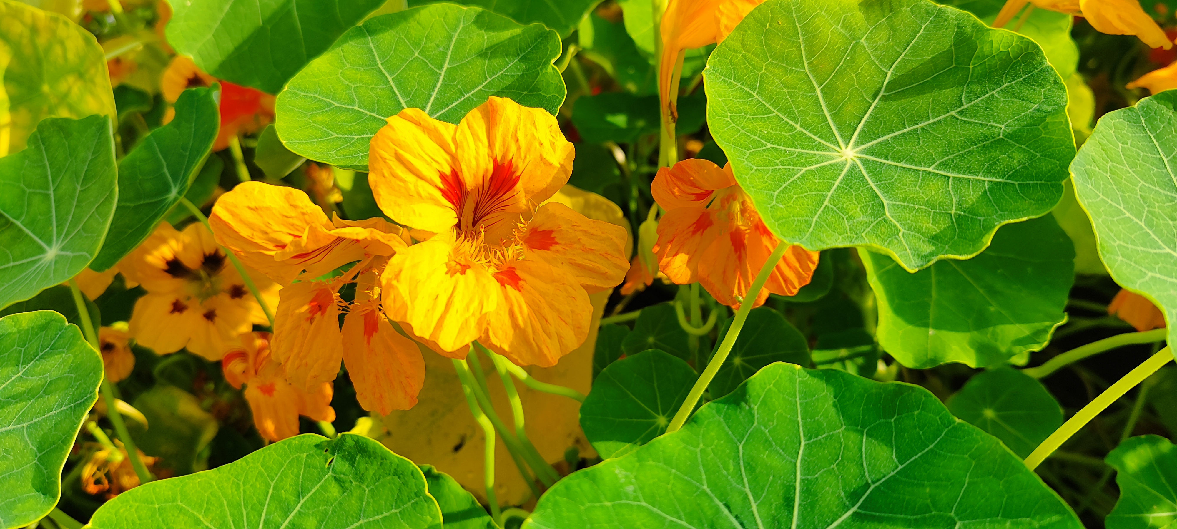 Величавые розы и гортензии задают тон. Петунии и цинии – яркие солисты. Лапчатка купается в золоте, а аллисиум с настурцией создают съедобный ковер: медовый и перечный.