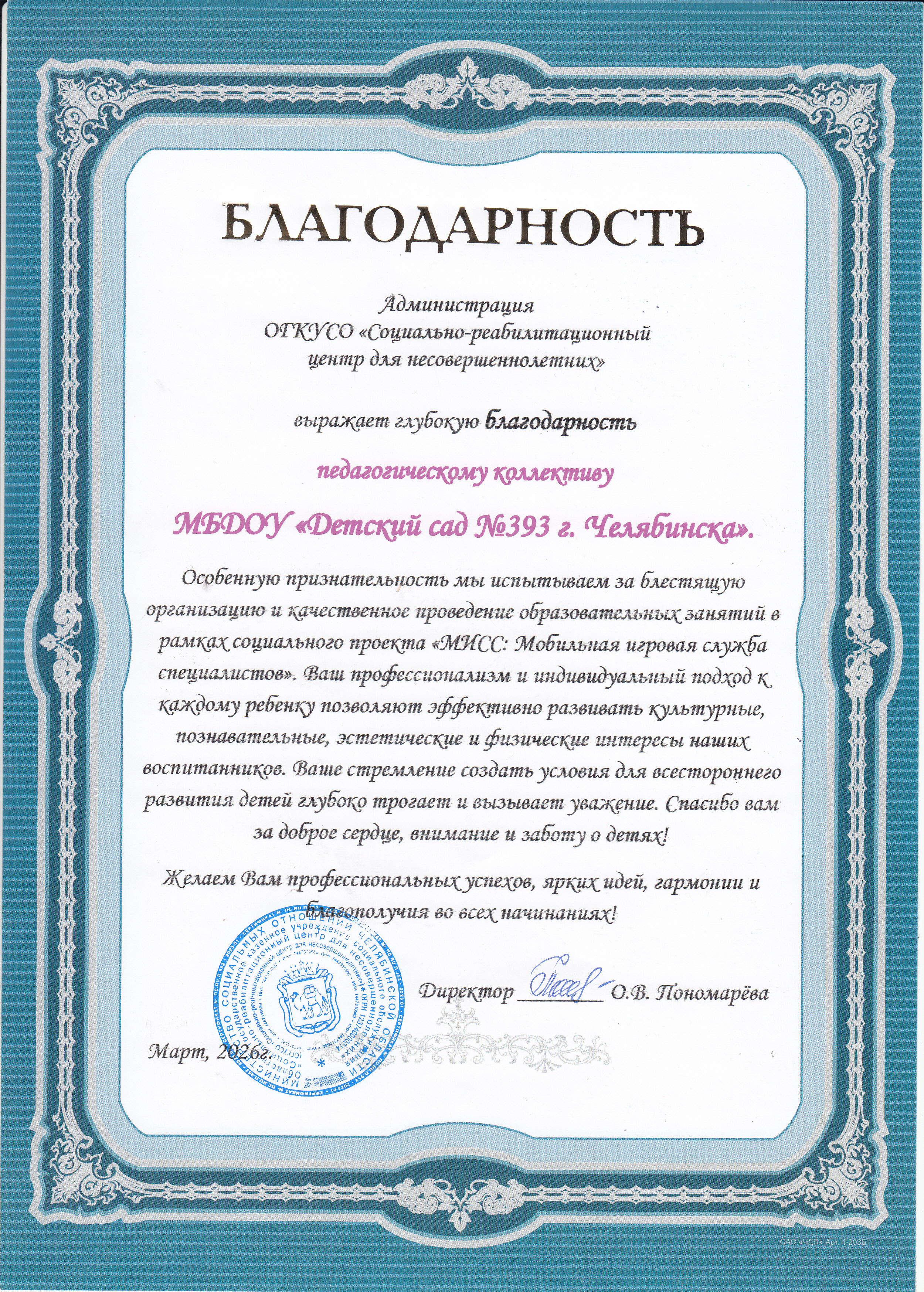 - Договор от 04.2023 г. с ОГКУСО "Социально-реабилитационный центр для несовершеннолетних"